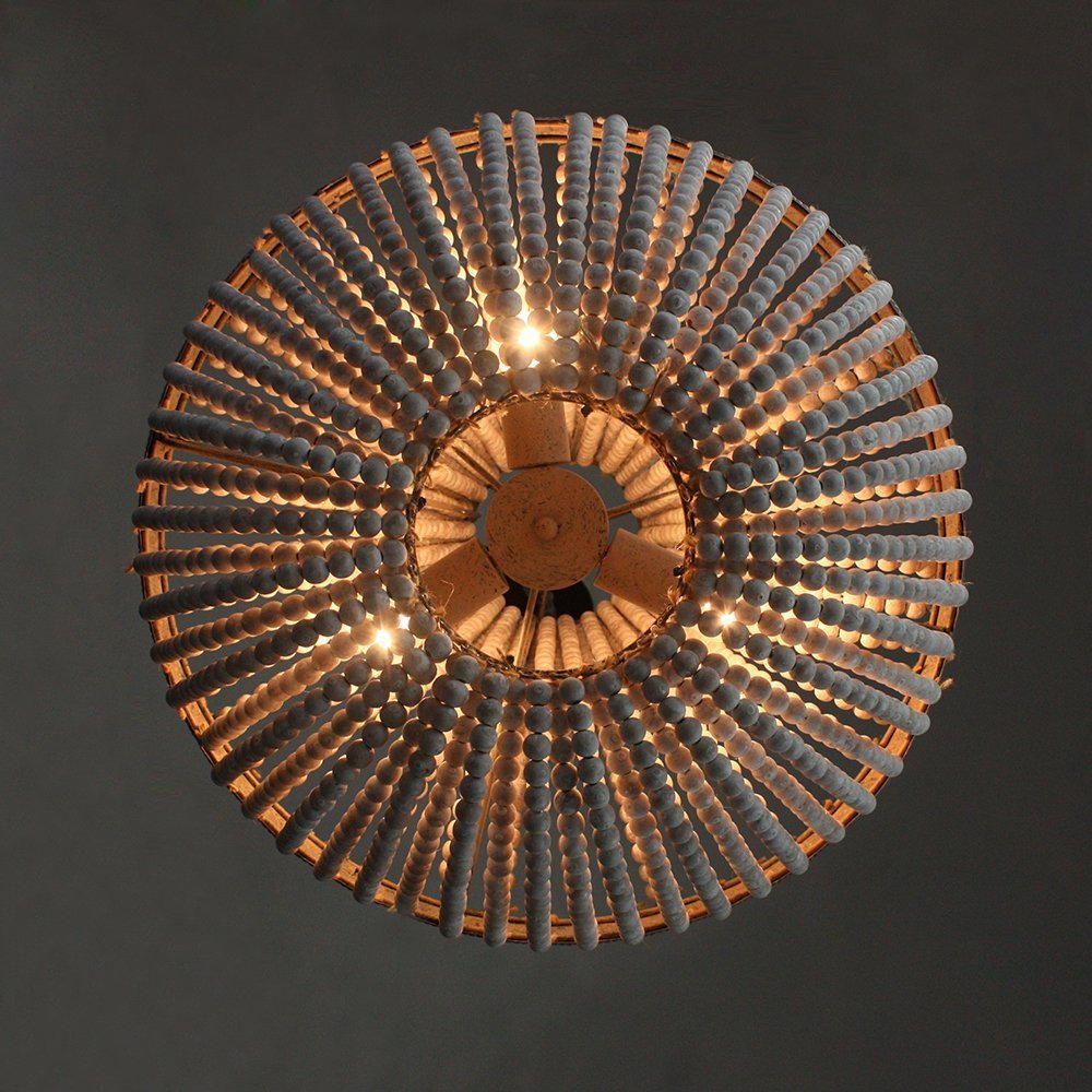 Wooden Bead Chandelier Personality Distressed Accessories Lamps Living Room Study Lighting